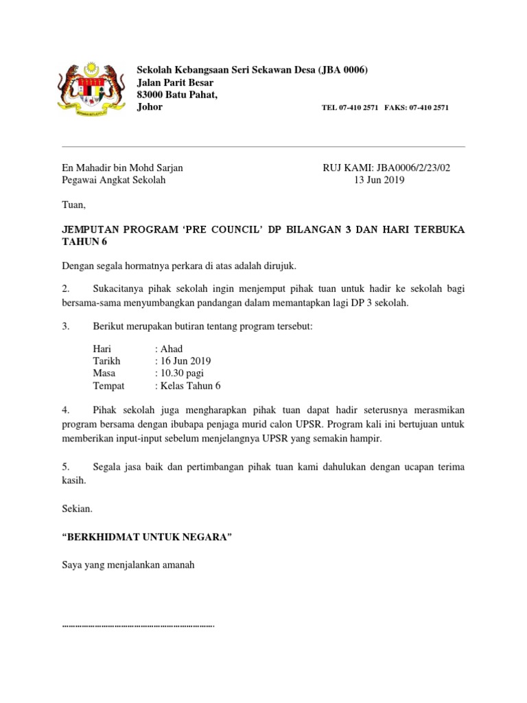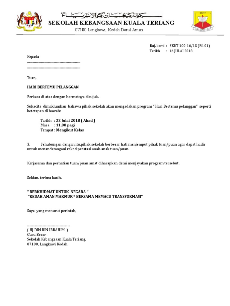 Contoh Surat Jemputan Ibu Bapa Ke Program Sekolah Pdf